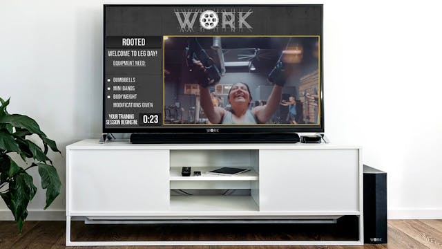 Legs and Glutes. Strength and plyometrics pair up for a lower body blast. Dumbbells and mini bands preferred, bodyweight substitutions given when possible.